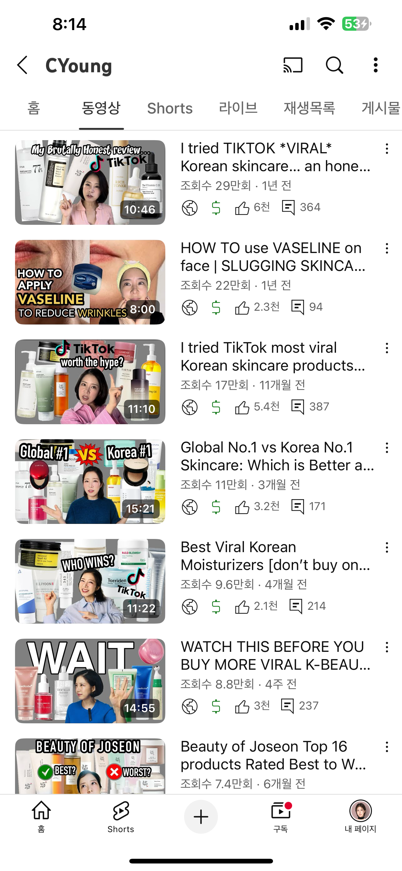 부담스러워 한국어로 하는 뷰티채널로. 한 6개월했는데 초보라 조회수랑 구독자에 집착하니 너무 시간대비 효율이