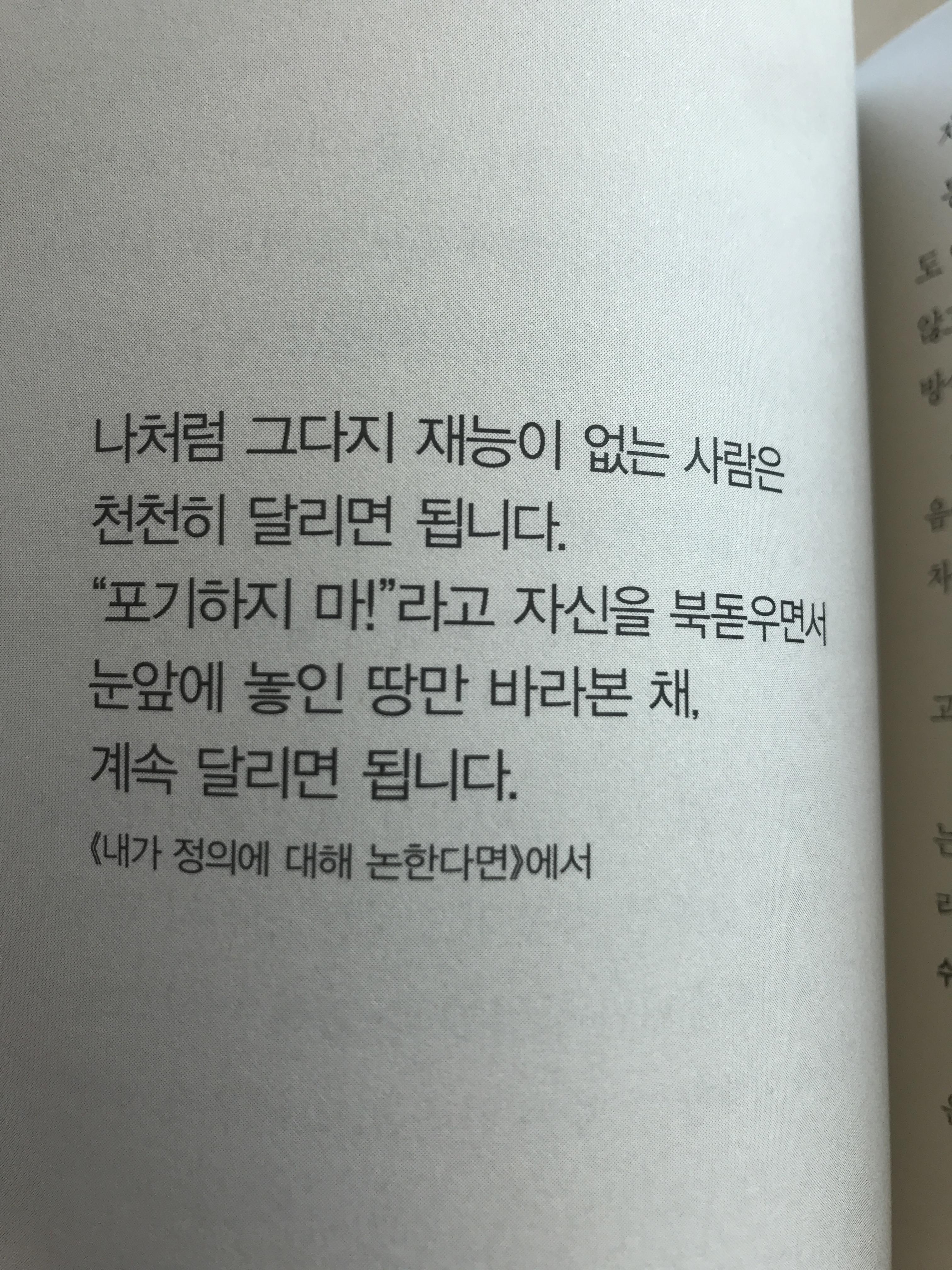 천천히 꾸준히 달리라는 말이 큰 위안이 된 책.